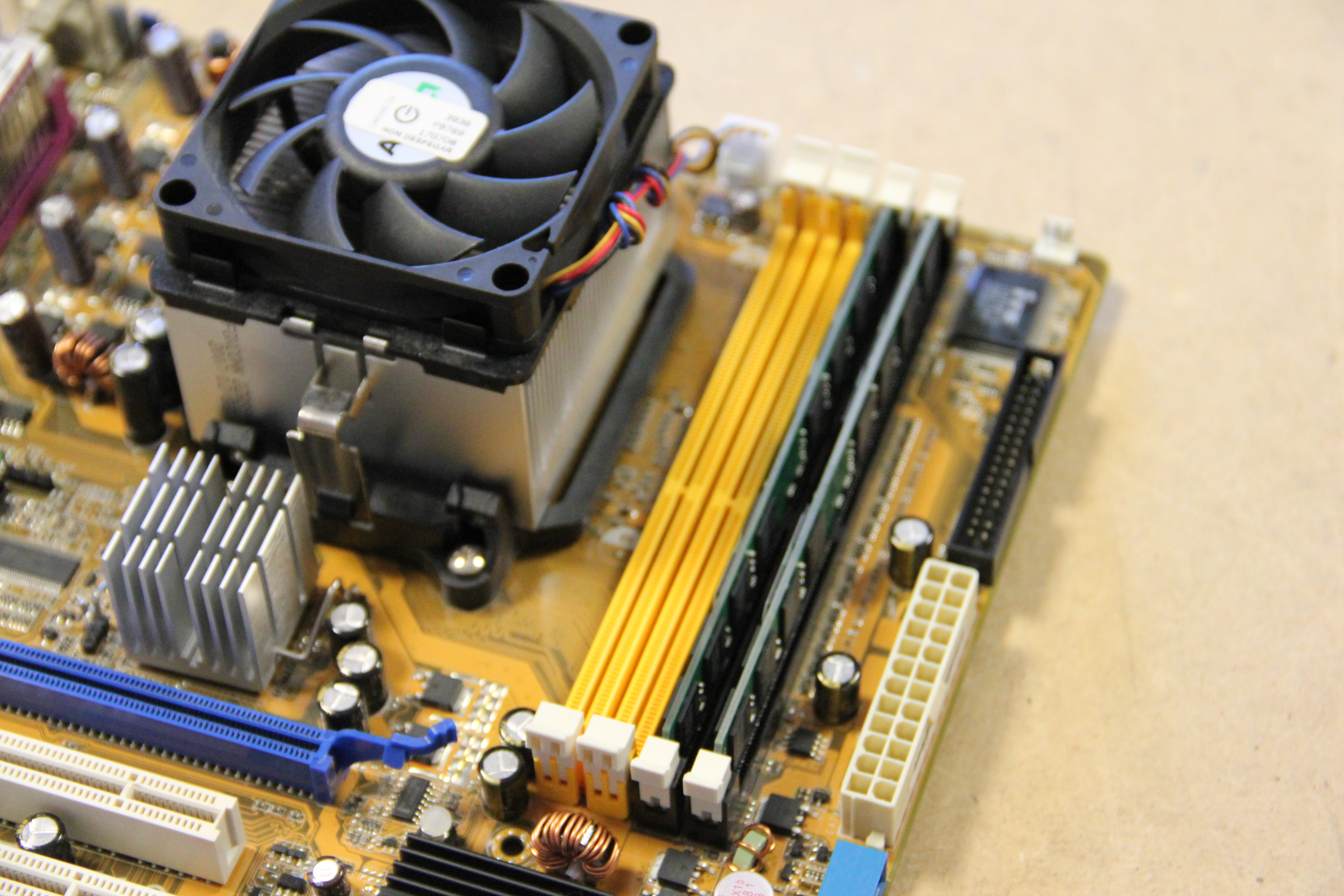 - atx 24 pines, disipador, placa base, ram, zócalo